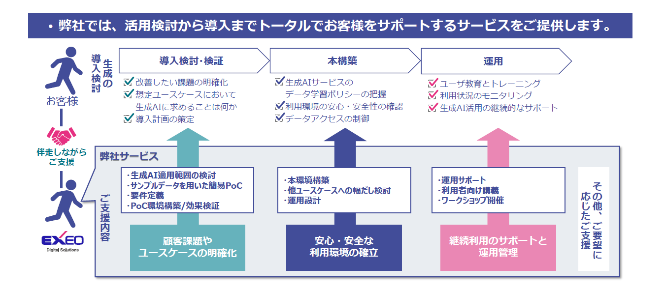 図2:エクシオ・デジタルソリューションズの生成AI導入時におけるサポート概要