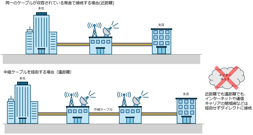 インターネットなどを介さず、拠点専用の通信回線を作りダイレクトに接続します。